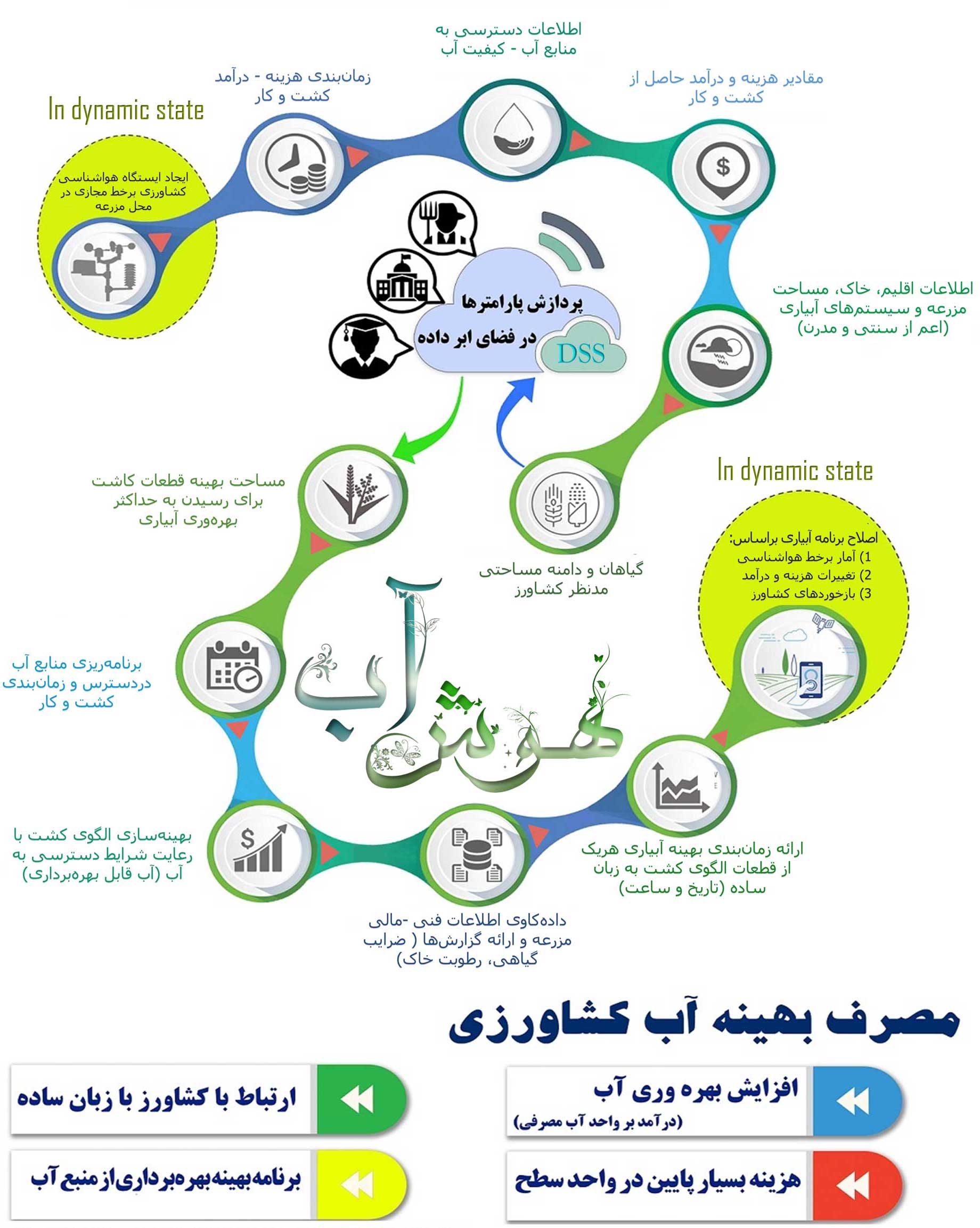 اطلاعات برخط پیشبینی هواشناسی کشاورزی مجازی دقیقا در محل مزرعه ارائه میشود. این اطلاعات در برنامه ریزی بهینه آبیاری نقش اساسی دارد. همچنین کشاورز میتواند جهت امور کشاورزی از اطلاعات فوق استفاده کند.